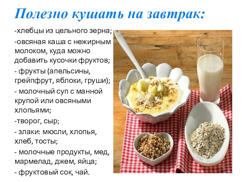 Презентация, доклад по здоровьесбережению на тему Каким должен быть завтрак