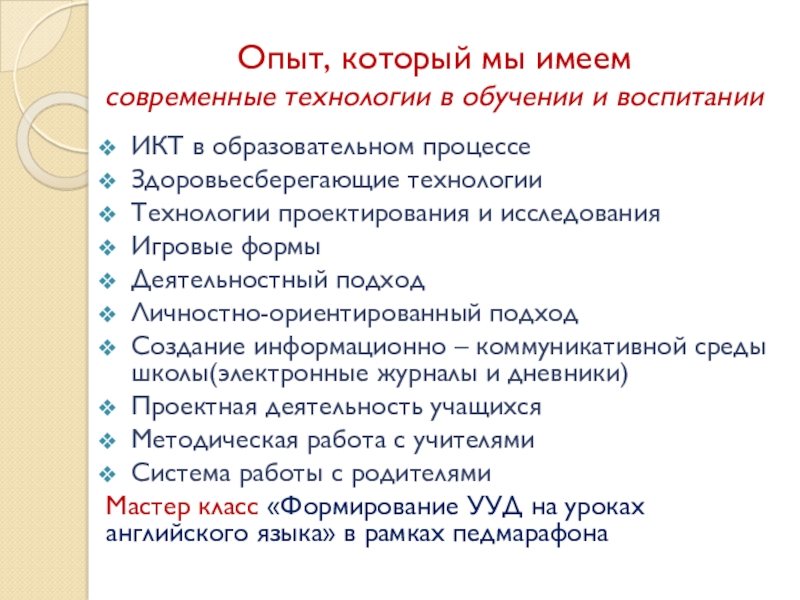 4. Отбор и освоение образовательных технологий деятельностного типа: исследовательских, проектных и др.