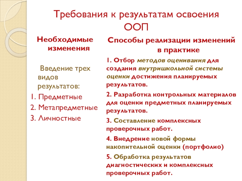 1. Отбор методов оценивания для создания внутришкольной системы оценки достижения планируемых результатов.
