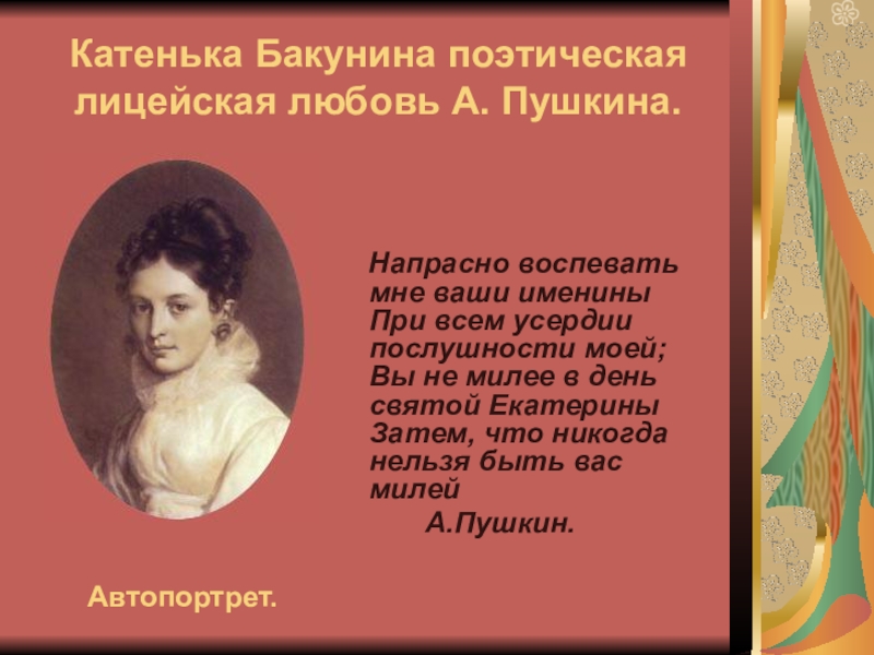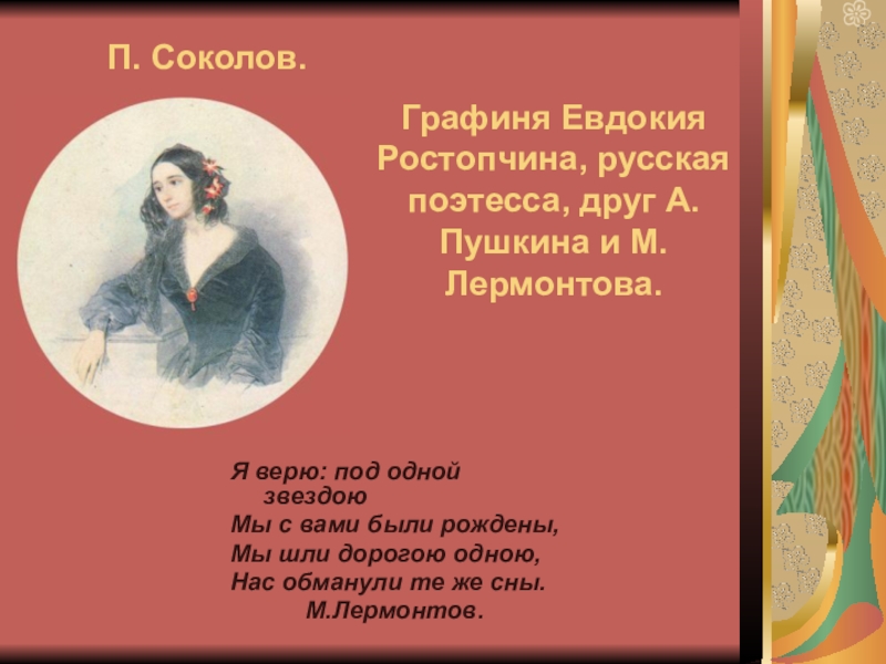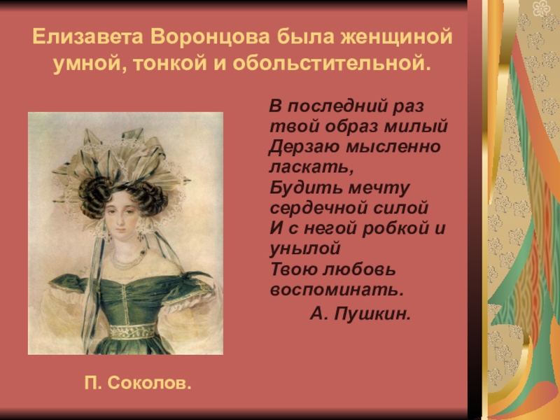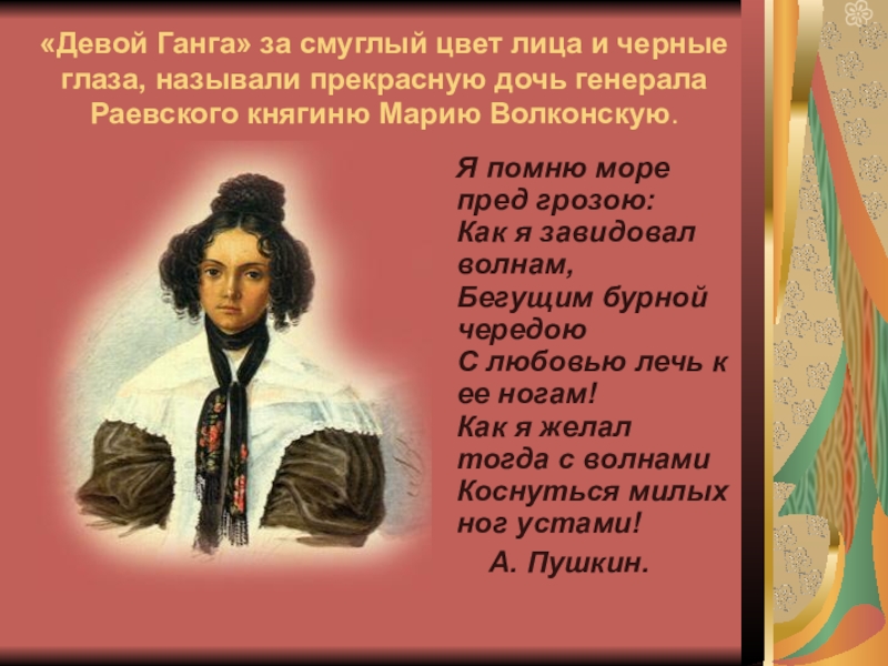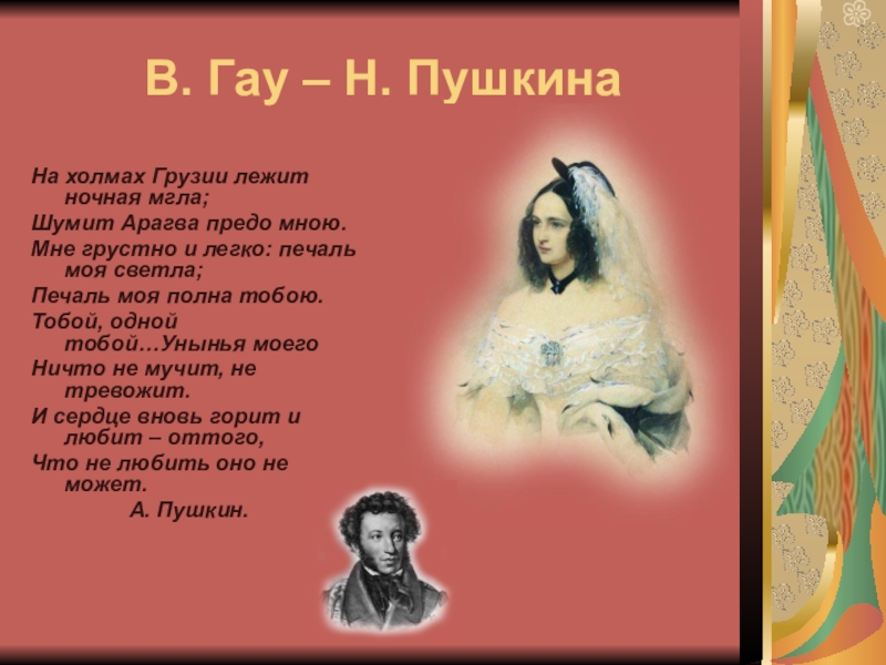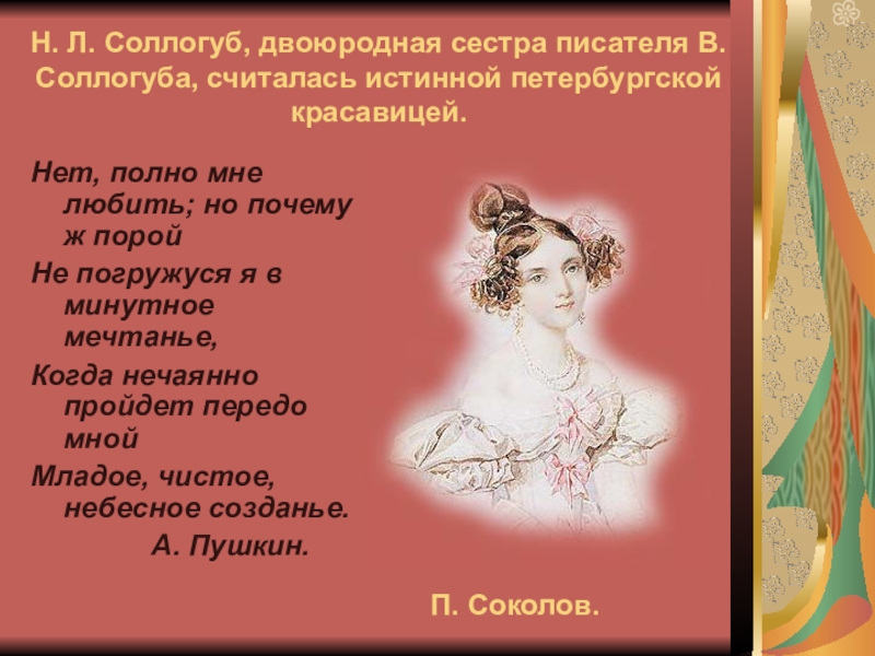 красоте Н. Пушкиной. В нее безответно был влюблен М. Лермонтов.