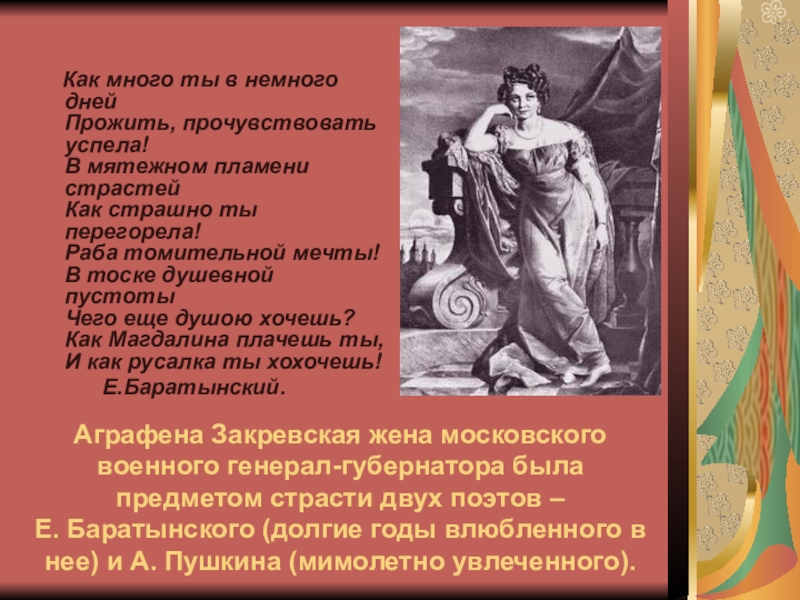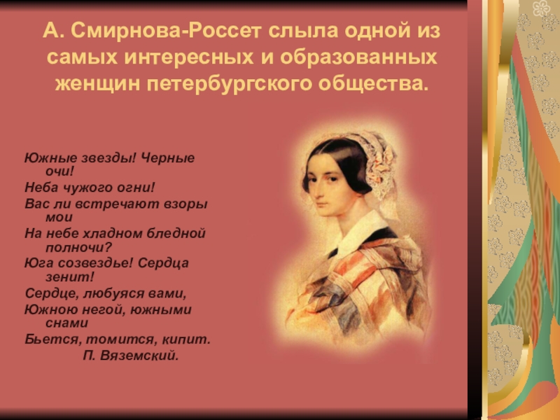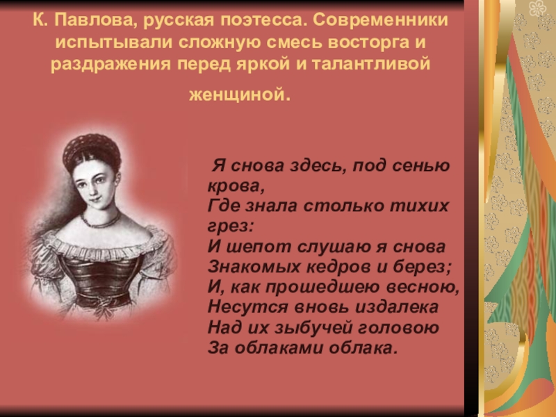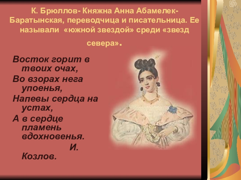 Слайд 12К. Брюллов- Княжна Анна Абамелек-Баратынская, переводчица и писательница. Ее называли «южной