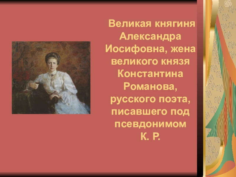 Слайд 5 Великая княгиня Александра Иосифовна, жена великого князя Константина Романова, русского