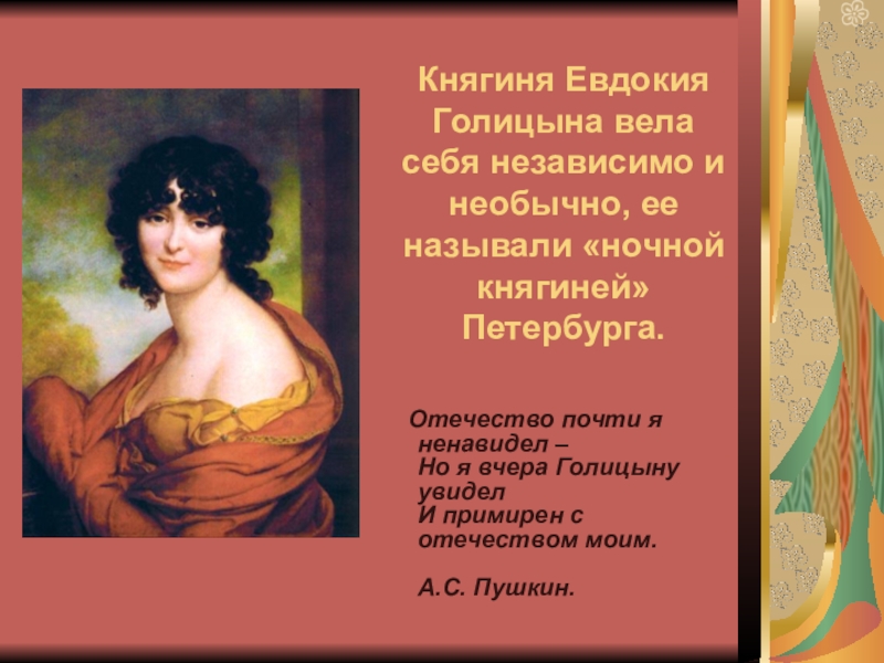 Слайд 4Графиня Эмилия Карловна Мусина-Пушкина – «Северная скандинавская красавица» была соперницей по