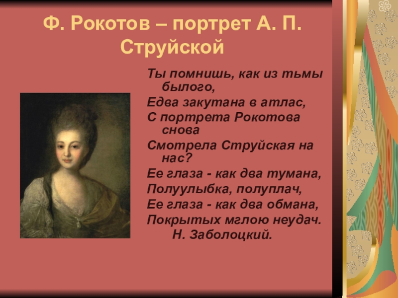 Слайд 59Ф. Рокотов – портрет А. П. Струйской