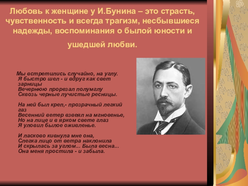 Слайд 54Любовь к женщине у И.Бунина – это страсть, чувственность и всегда
