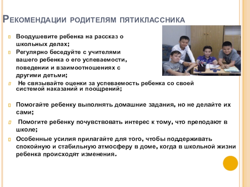 Помогайте ребенку выполнять домашние задания, но не делайте их сами;