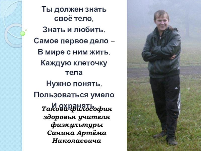 Такова философия здоровья учителя физкультуры Санина Артёма Николаевича