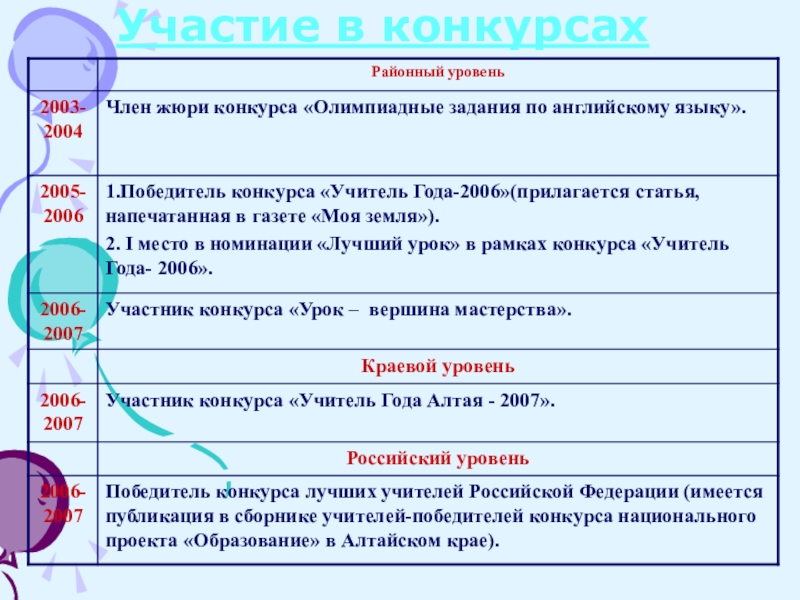 Слайд 9Участие в конкурсах