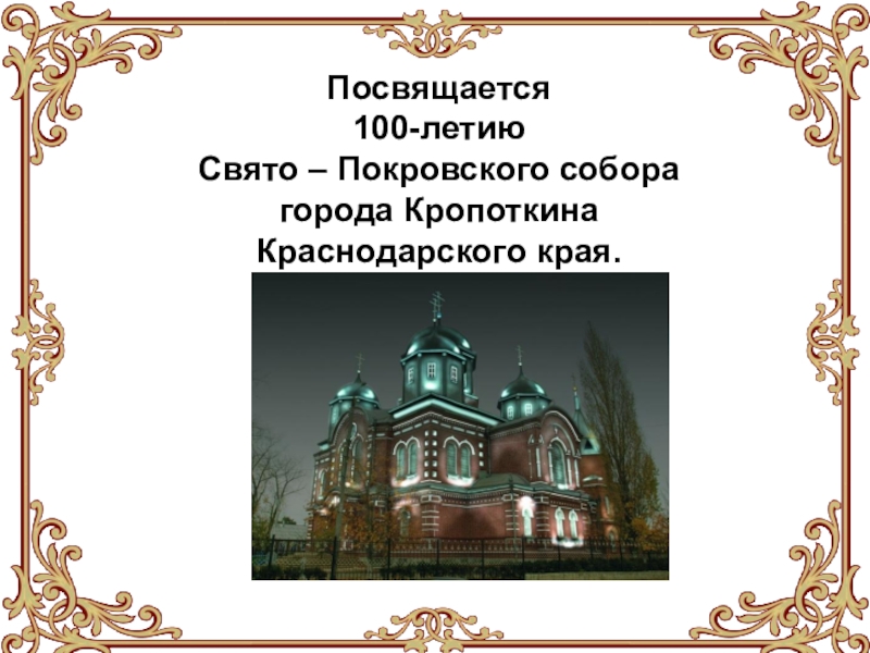 Слайд 2В 2013 году одной из самых главных достопримечательностей города Кропоткин Собору