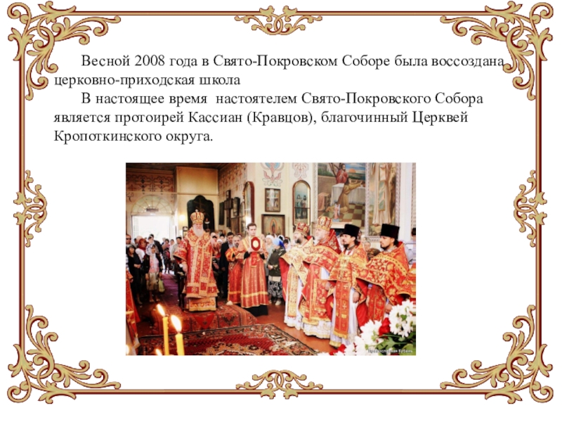 Слайд 17Весной 2008 года в Свято-Покровском Соборе была воссоздана церковно-приходская школа