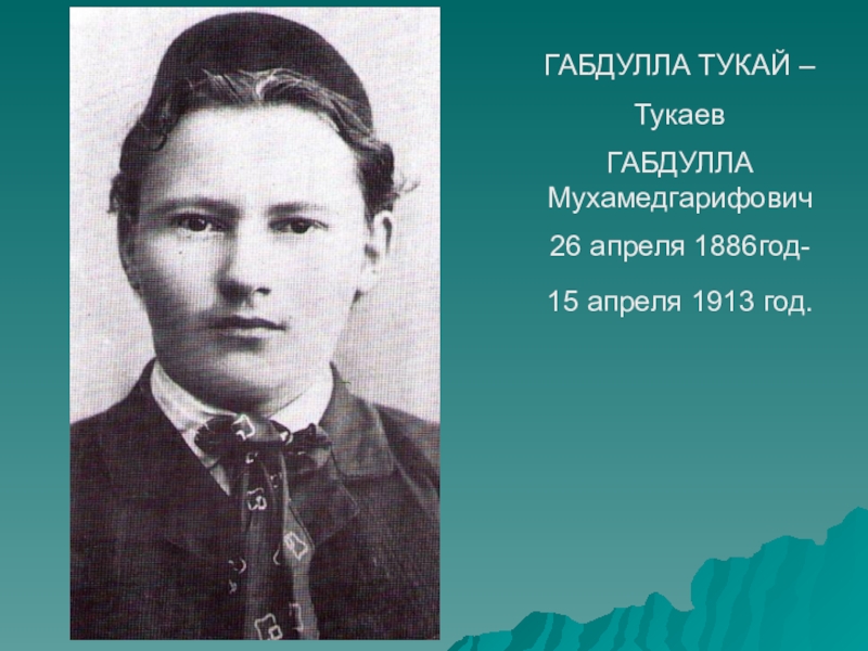 ГАБДУЛЛА ТУКАЙ – Тукаев ГАБДУЛЛА Мухамедгарифович26 апреля 1886год- 15 апреля 1913 год.