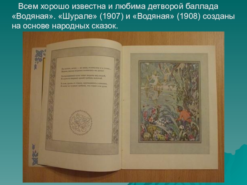 Всем хорошо известна и любима детворой баллада «Водяная». «Шурале» (1907) и «Водяная» (1908)