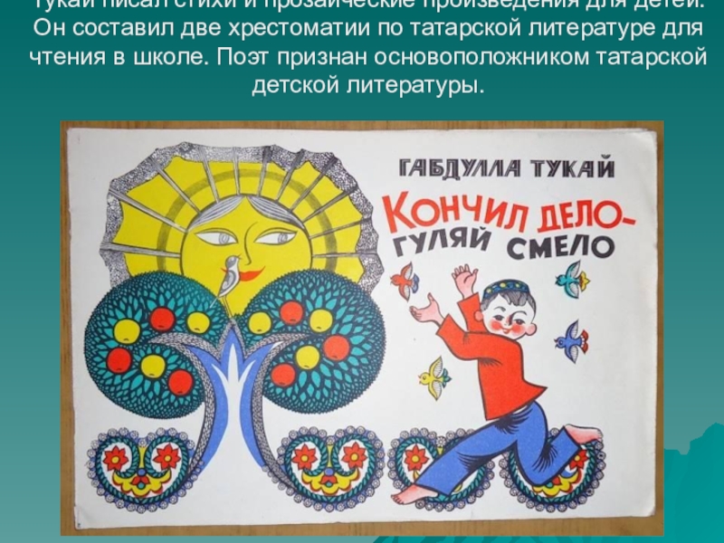 Слайд 21Тукай писал стихи и прозаические произведения для детей. Он составил две