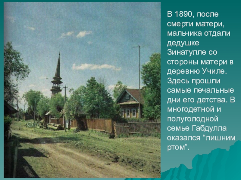 Слайд 6В 1890, после смерти матери, мальчика отдали дедушке Зинатулле со стороны