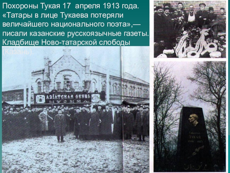 Слайд 24Похороны Тукая 17 апреля 1913 года. «Татары в лице Тукаева потеряли