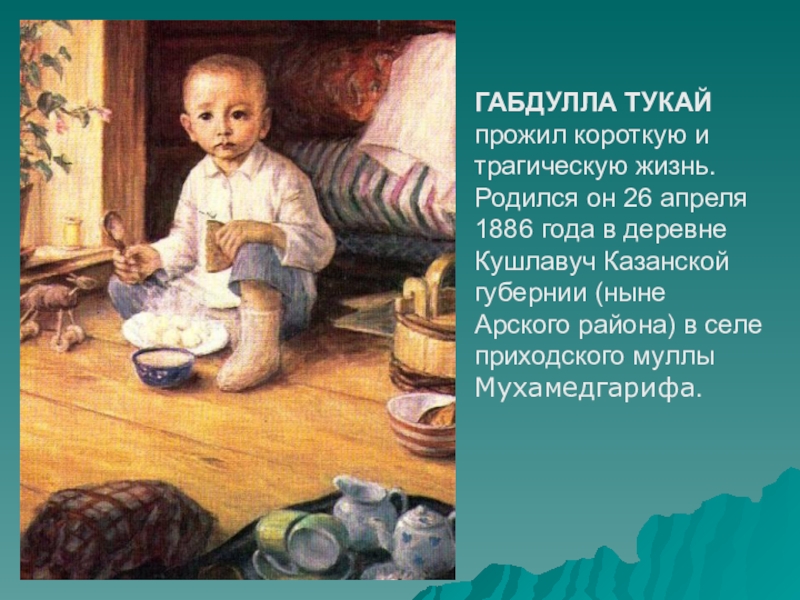 Слайд 4ГАБДУЛЛА ТУКАЙ прожил короткую и трагическую жизнь. Родился он 26 апреля