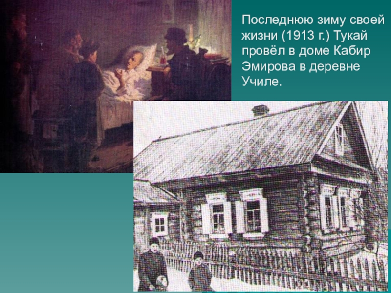 Слайд 23Последнюю зиму своей жизни (1913 г.) Тукай провёл в доме Кабир