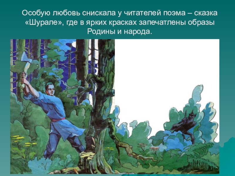 Слайд 19Особую любовь снискала у читателей поэма – сказка «Шурале», где в