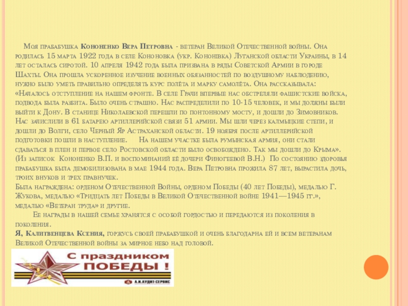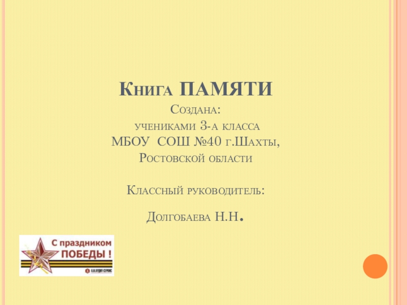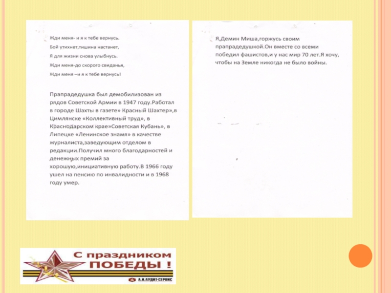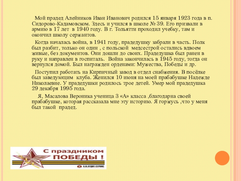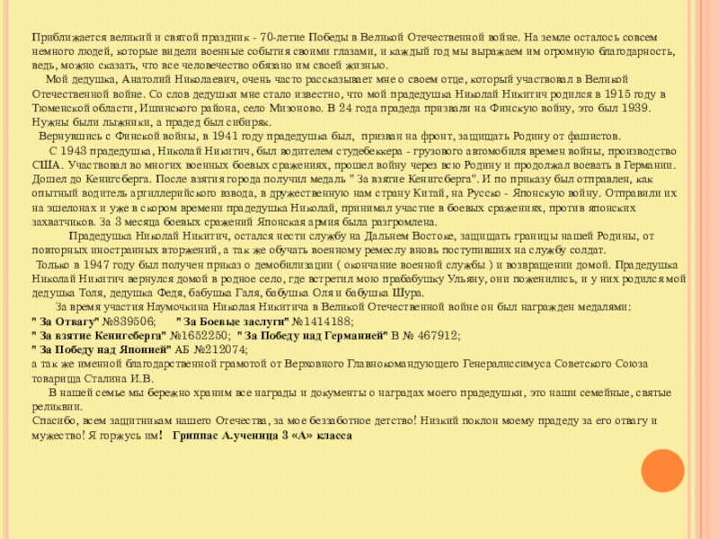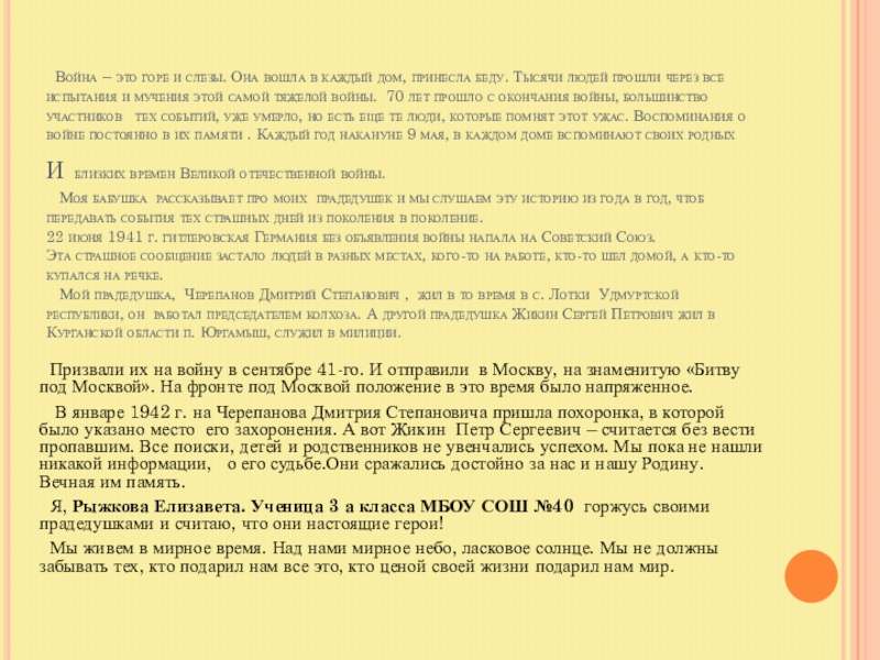 Я, Рыжкова Елизавета. Ученица 3 а класса МБОУ СОШ №40 горжусь своими прадедушками и считаю, что они настоящие герои!