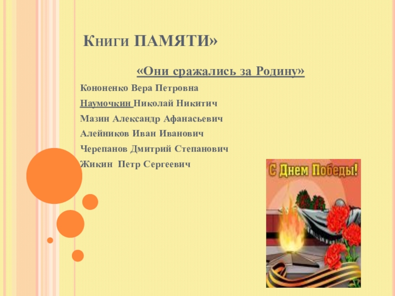 В январе 1942 г. на Черепанова Дмитрия Степановича пришла похоронка, в которой было указано место его захоронения. А вот Жикин Петр Сергеевич – считается без вести пропавшим. Все поиски, детей и родственников не увенчались успехом. Мы пока не нашли никакой информации, о его судьбе.Они сражались достойно за нас и нашу Родину. Вечная им память.