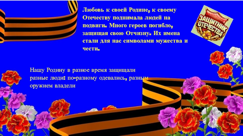 Нашу Родину в разное время защищали разные люди: по-разному одевались, разным оружием владели.