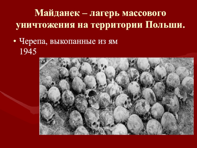 Слайд 10Майданек – лагерь массового уничтожения на территории Польши.