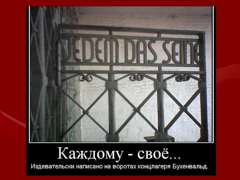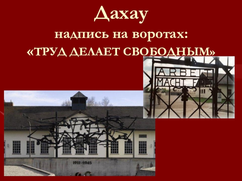 Слайд 8Дахау надпись на воротах: «ТРУД ДЕЛАЕТ СВОБОДНЫМ»