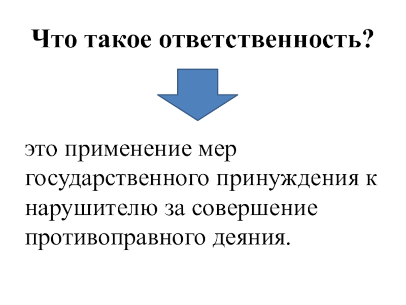 Что такое ответственность?это применение мер государственного принуждения к нарушителю за совершение противоправного деяния.
