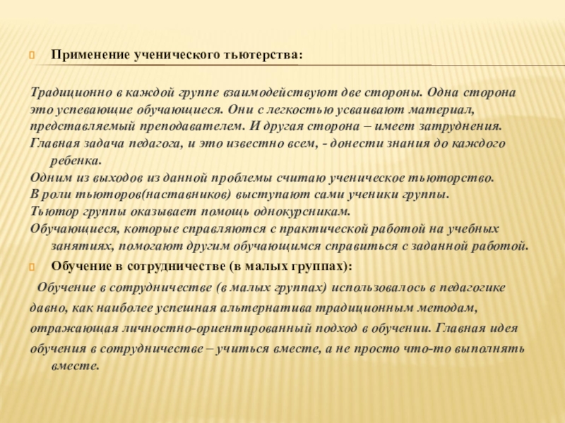 Обучение в сотрудничестве (в малых группах) использовалось в педагогике
