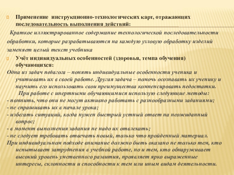 Слайд 3Применение инструкционно-технологических карт, отражающих последовательность выполнения действий: