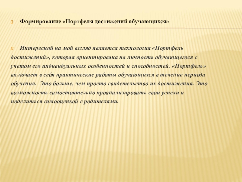 учетом его индивидуальных особенностей и способностей. «Портфель»