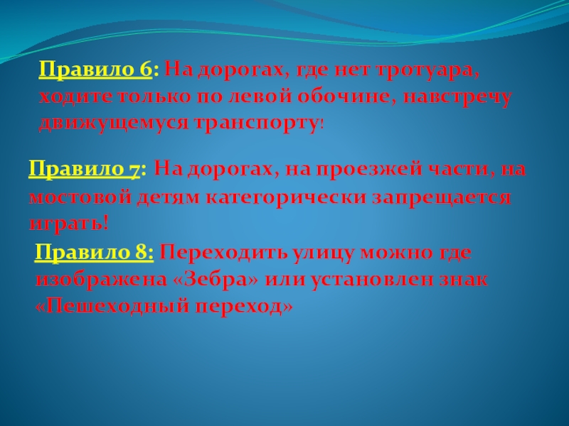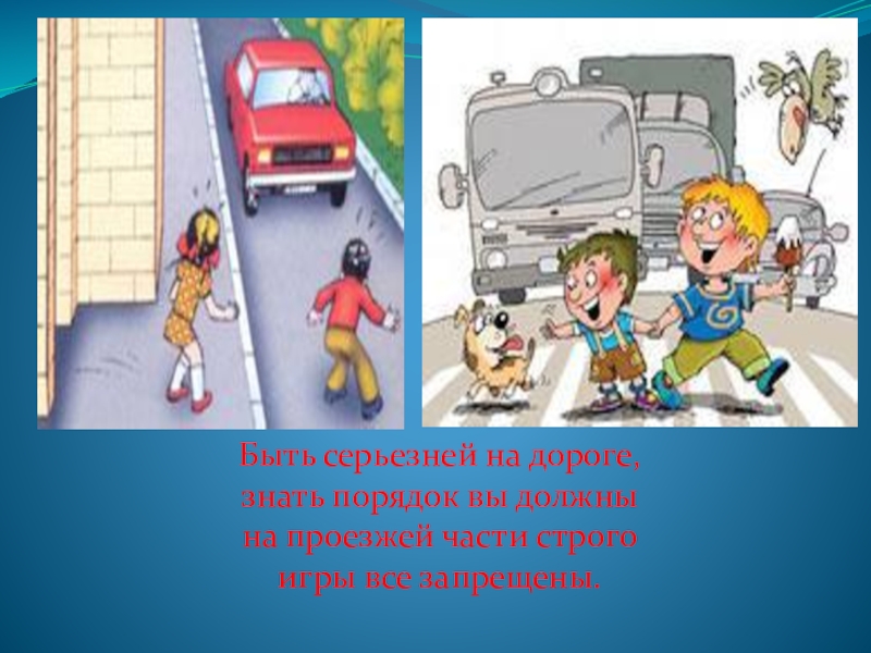 Правило 7: На дорогах, на проезжей части, на мостовой детям категорически запрещается играть!