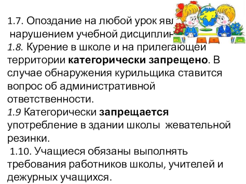 1.9 Категорически запрещается употребление в здании школы жевательной резинки.