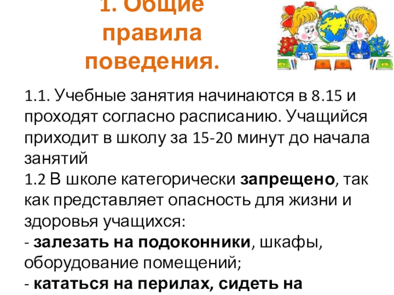 1.2 В школе категорически запрещено, так как представляет опасность для жизни и здоровья учащихся: