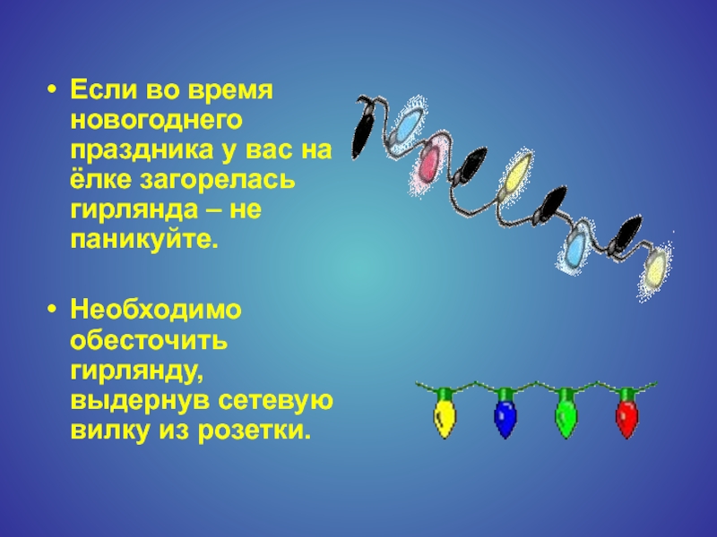 Слайд 6Если во время новогоднего праздника у вас на ёлке загорелась гирлянда