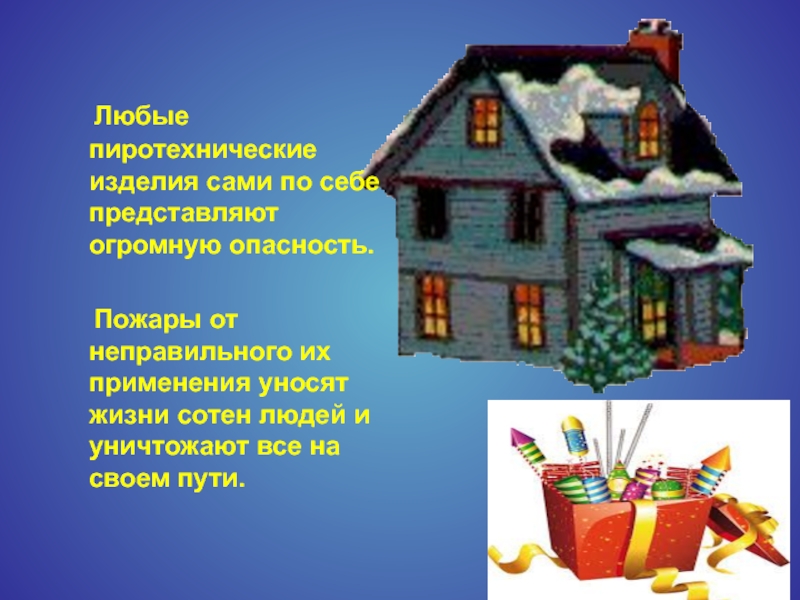 Любые пиротехнические изделия сами по себе представляют огромную опасность.