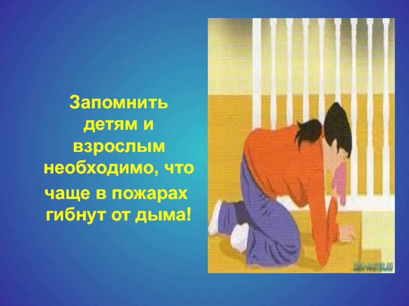Запомнить детям и взрослым необходимо, что чаще в пожарах гибнут от дыма!