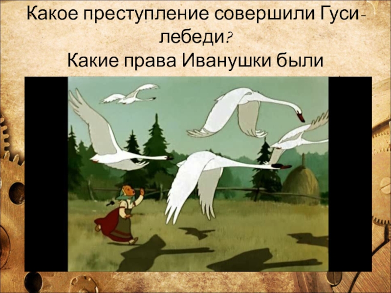 Задача 1.  Какое преступление совершили Гуси-лебеди?  Какие права Иванушки были нарушены?