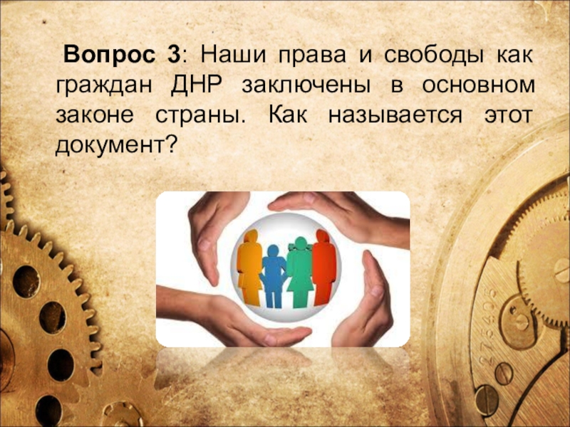 Слайд 8  Вопрос 3: Наши права и свободы как граждан ДНР заключены в