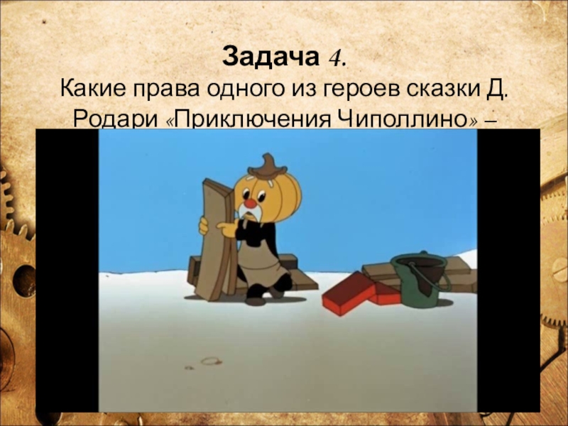 Задача 4.  Какие права одного из героев сказки Д.Родари «Приключения Чиполлино» –