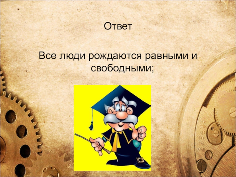 Слайд 6 Вопрос 2: В статье 1 Всеобщей декларации прав человека утверждается, что