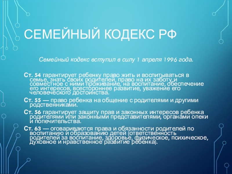 Слайд 8СЕМЕЙНЫЙ КОДЕКС РФ
