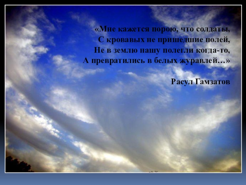 «Мне кажется порою, что солдаты,  С кровавых не пришедшие полей,  Не в землю нашу полегли когда-то,  А