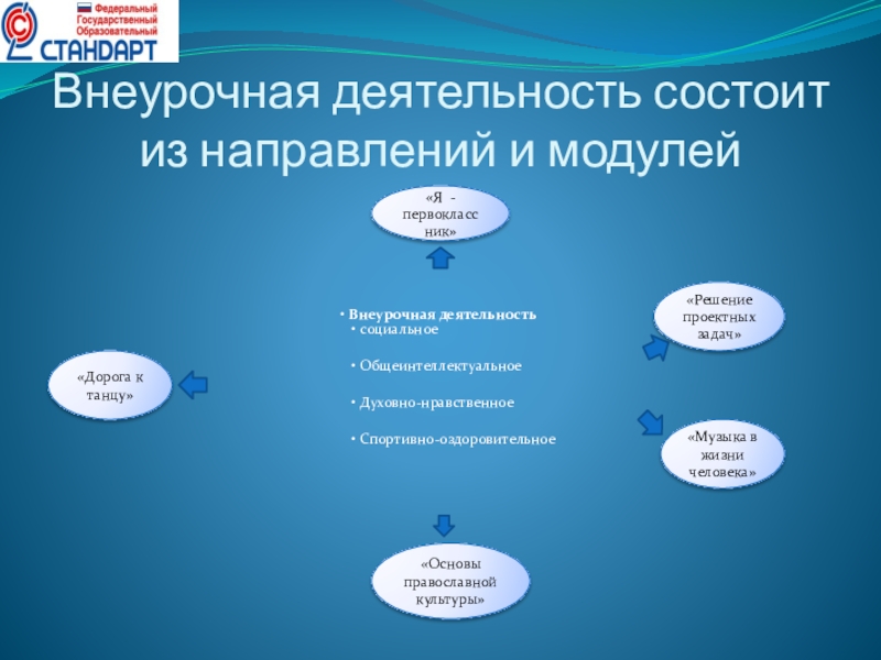 Слайд 19Внеурочная деятельность состоит из направлений и модулей