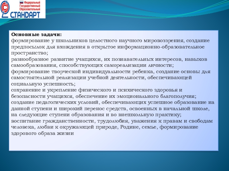 формирование у школьников целостного научного мировоззрения, создание предпосылок для вхождения