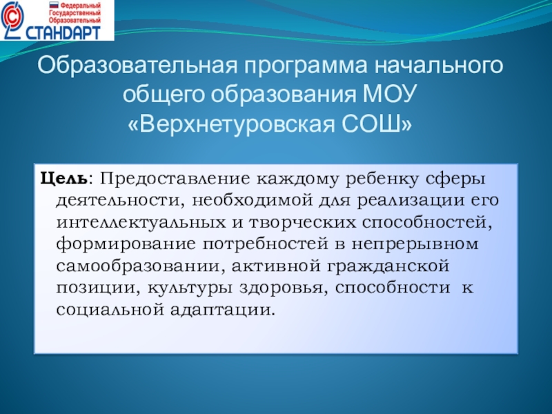 Образовательная программа начального общего образования МОУ «Верхнетуровская СОШ»