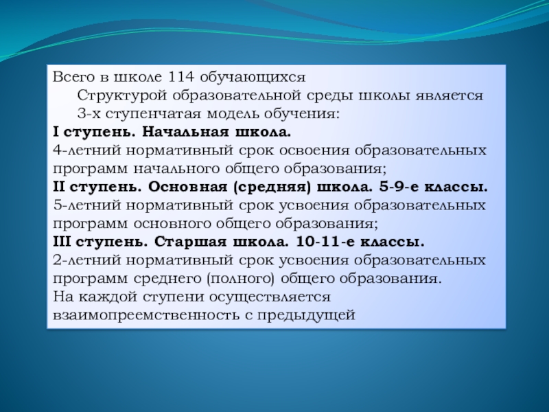 Слайд 5В начальной школе 4 класса-комплекта, в которых обучается 40 учащихся.