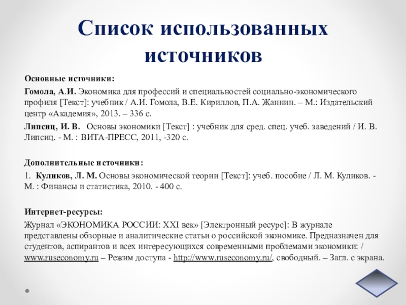 Слайд-лекции предназначены для студентов среднего профессионального образования по дисциплине «Экономика»