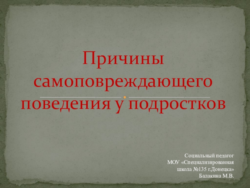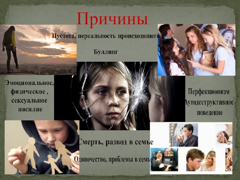 самонаказание (немалая часть тех, кто наносит себе повреждения, в детстве сталкивались с насилием в семье и нередко сами были объектами насилия, и они продолжают наказывать уже сами себя)