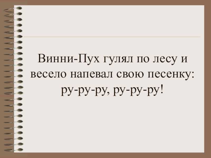 Слайд 3Винни-Пух гулял по лесу и весело напевал свою песенку: ру-ру-ру, ру-ру-ру!